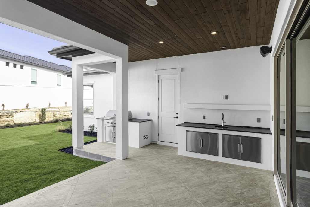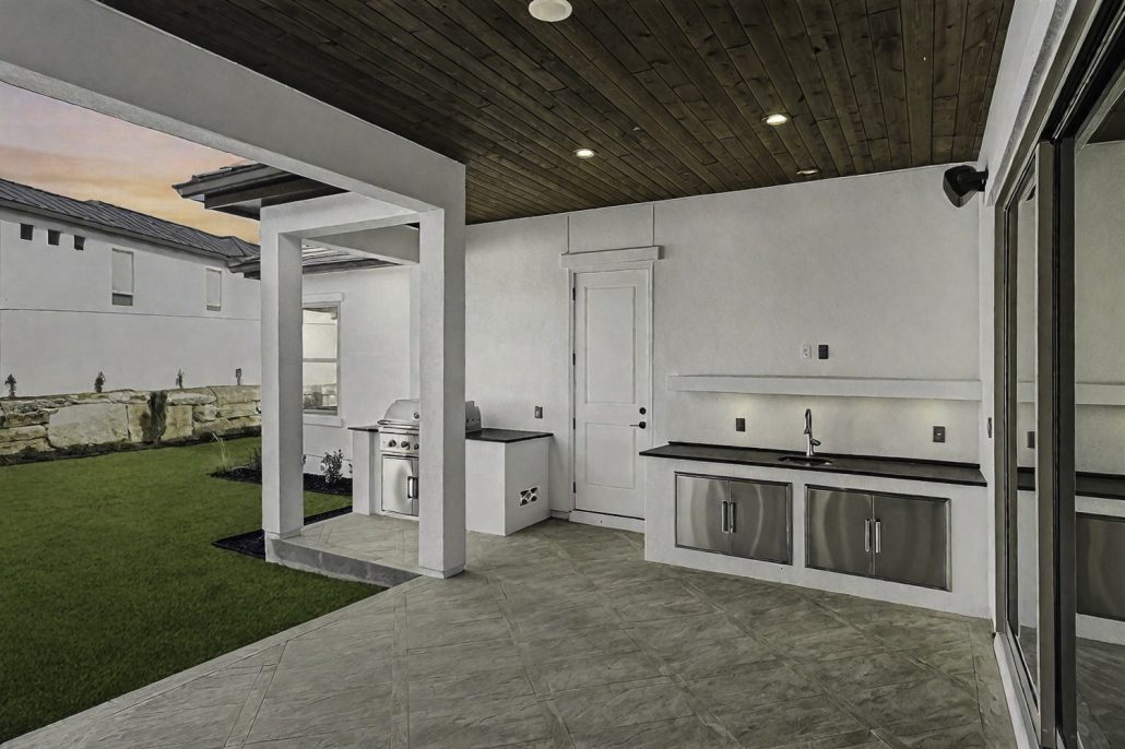 Inside, luxury meets comfort with an island kitchen that includes dolomite and marble countertops complemented by sleek white cabinets and the latest stainless steel appliances. Designed with sociability in mind, the kitchen flows seamlessly into the family room and dining area, perfect for quiet time with loved ones and entertaining guests. The primary bathroom invites relaxation with its freestanding tub, a walk-in glass-enclosed shower, separate vanities, and a dual walk-in closet. The covered patio extends the living space outdoors, complete with an outdoor kitchen that’s ideal for hosting gatherings in style.