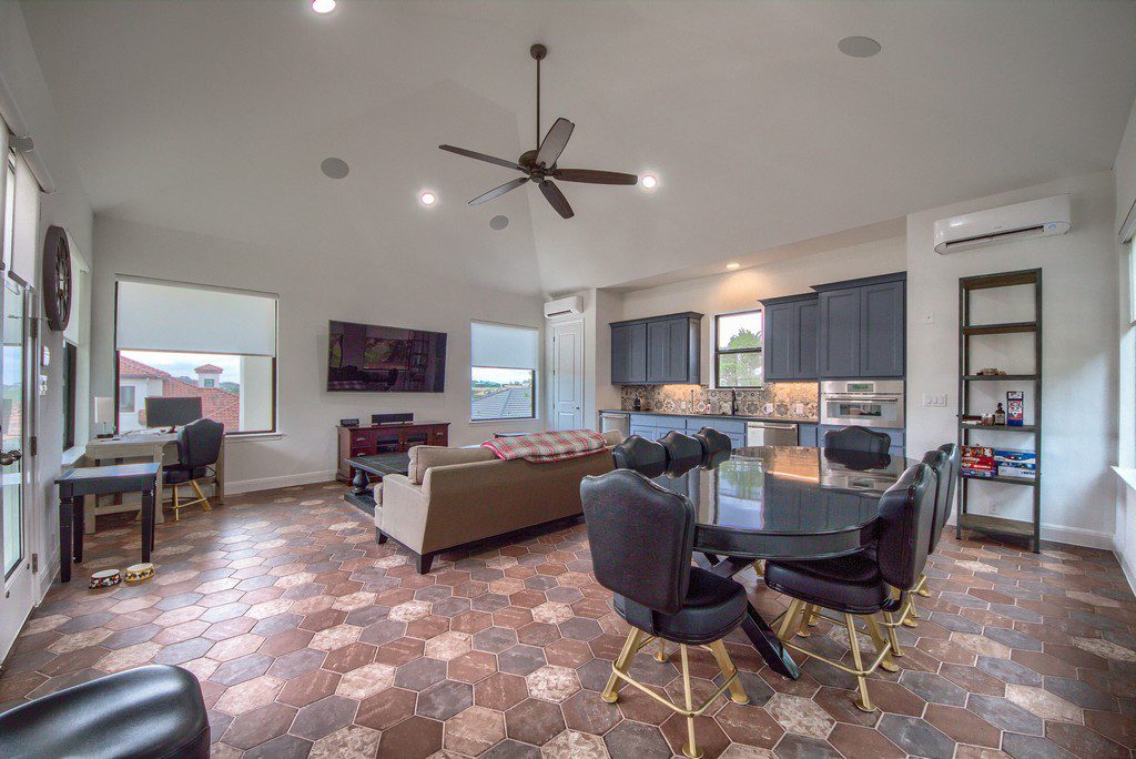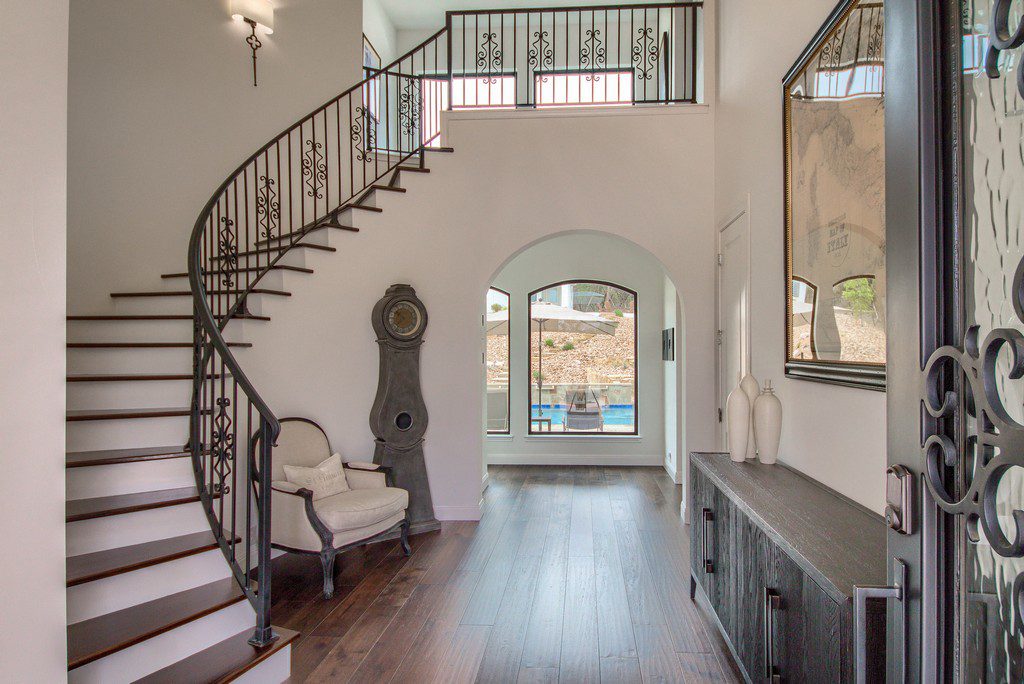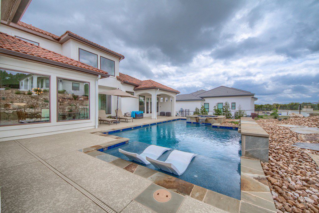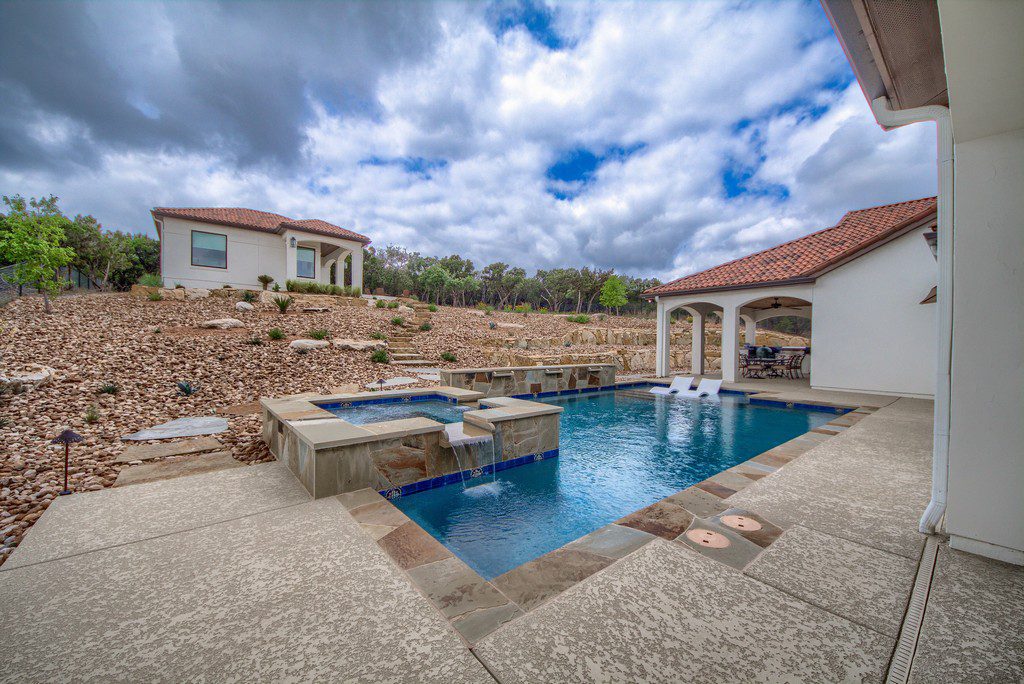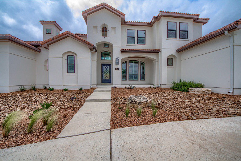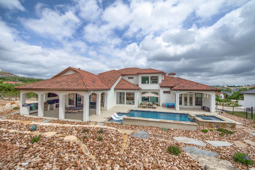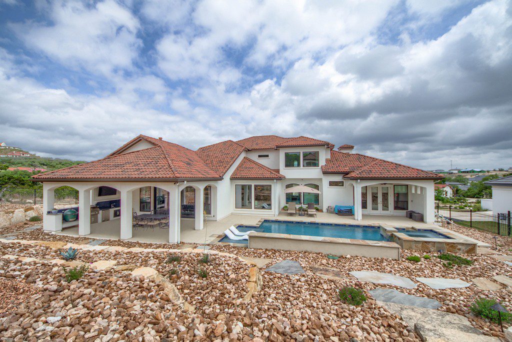 This four bedroom, three and a half bath custom home in Cantera Hills contains lots of great designer touches that really make it stand out. An impressive entry way with curved staircase is just the start as you move through the house and take in all its features. Gameroom off of the family room with fireplace, open island kitchen, master bedroom overlooking the pool, and a showpiece master bath with chandelier over the centrally located tub, separate vanities, and a walk-through shower. Outdoor kitchen, wide covered patio, inground pool with spa, and a hilltop cabana/guest house with full bath, kitchen, outdoor firepit, and breathtaking views.